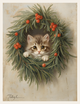 Ginger Sled and Woolen Whiskers is a festive winter vignette of whimsy and warmth. A rabbit dressed in a pink knitted scarf and sweater sits atop a gingerbread-inspired sled, its icing-like patterns glowing against the snowy landscape. Behind it, a decorated Christmas tree and wrapped presents shimmer softly, while pastel tones and painterly textures evoke a magical hush of holiday cheer.